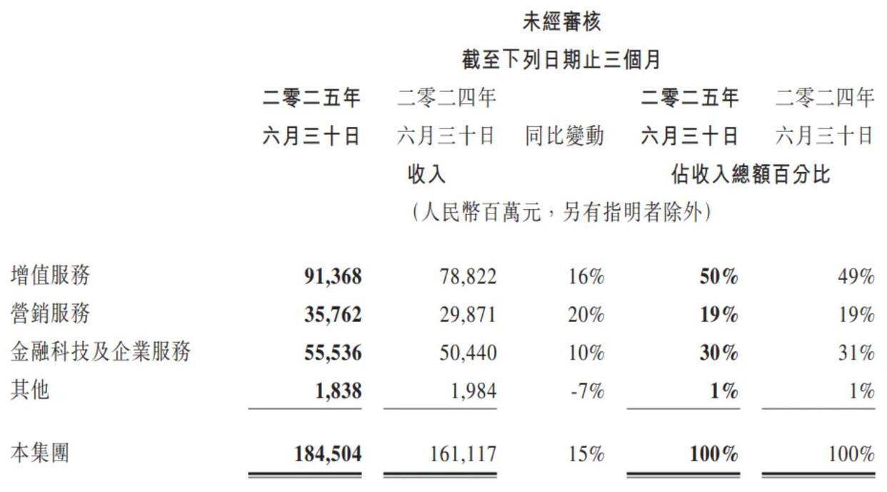增值服务、营销服务、金融科技及企业服务等三大核心业务皆取得两位数可持续增长,并全部超出市场预期。腾讯虽未在财报中披露AI业务具体数据,却在财报中16次提及AI。